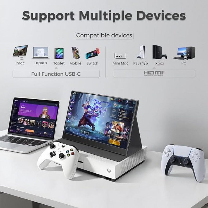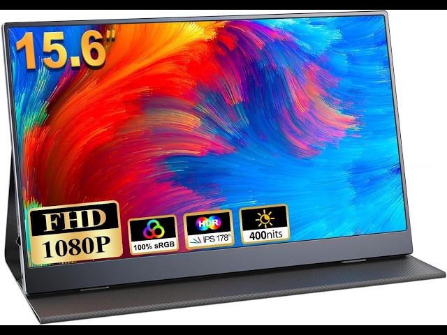 Portable Monitor 15.6-inch FHD 1080P Ultra-Slim Travel External Monitor HDR IPS Gaming Display with Kickstand &Speakers USB-C HDMI Plug&Play,for Laptop PC Phone PS4/5 Xbox Switch.